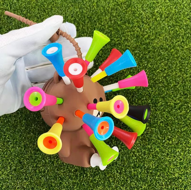 Bear-shaped tee holder for golf, multi-function, with strap and 10 tees